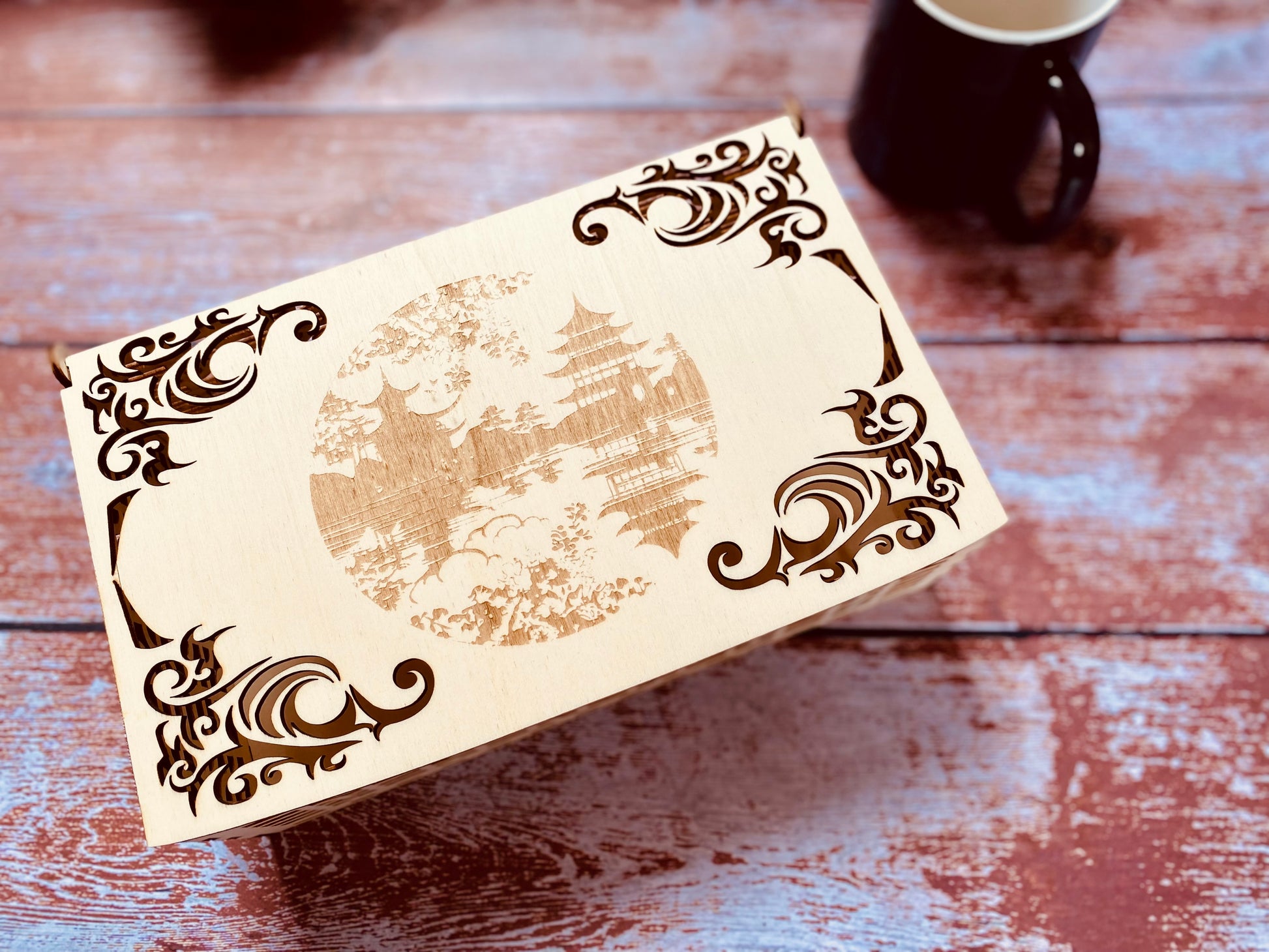 Ajoutez une touche de poésie à votre rituel de thé avec cette élégante boîte à thé en bois de peuplier, découpée et gravée avec soin.