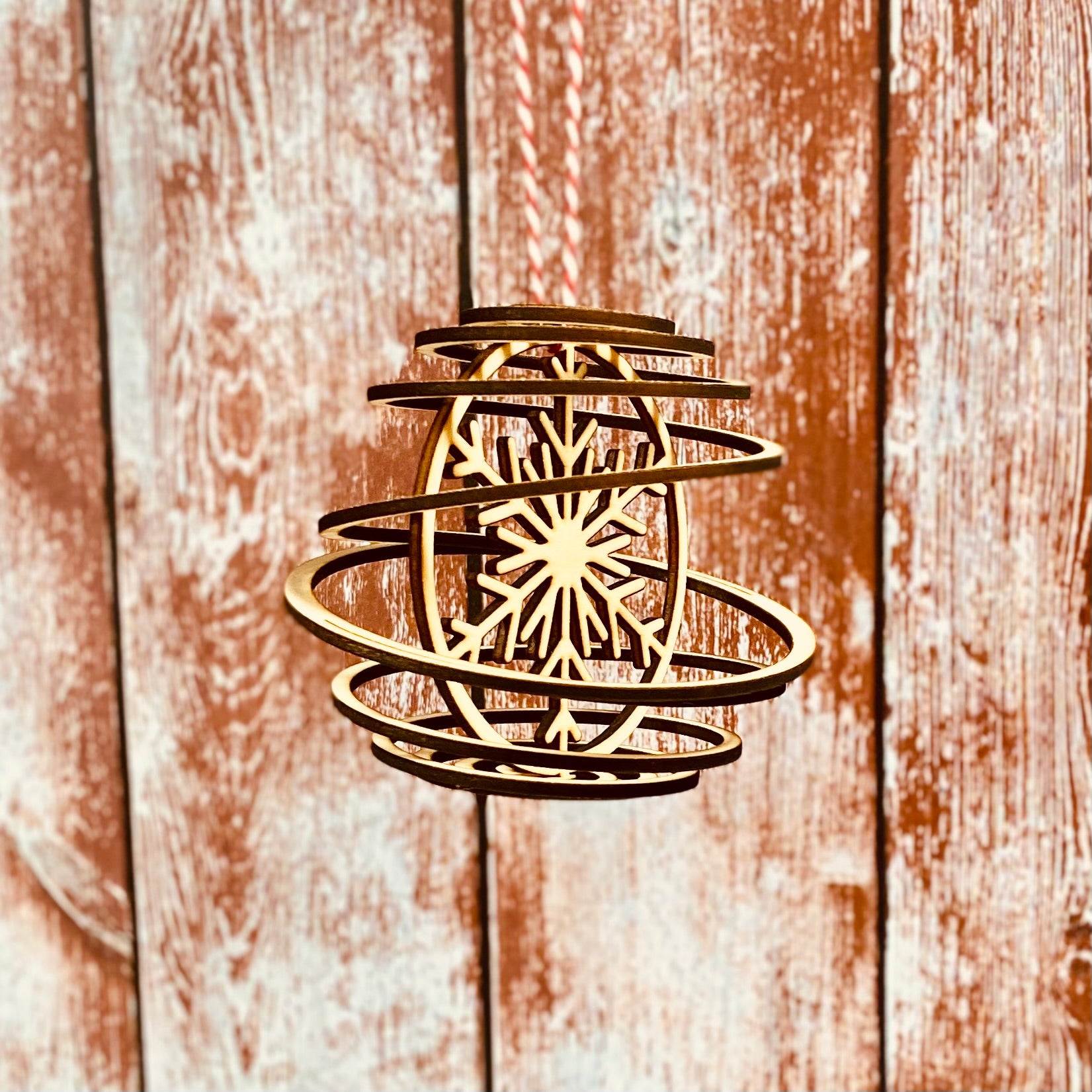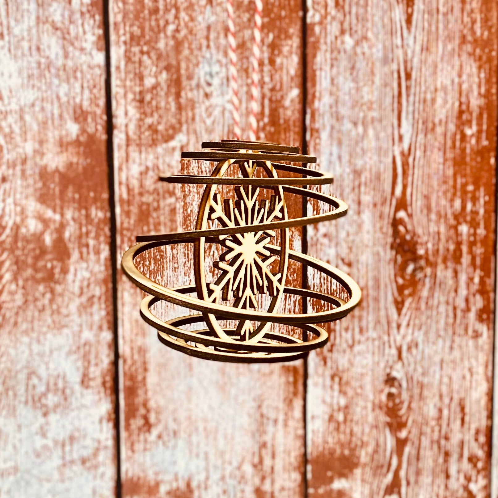 Craquez pour la douceur des fêtes avec notre boule spirale flocon en bois.