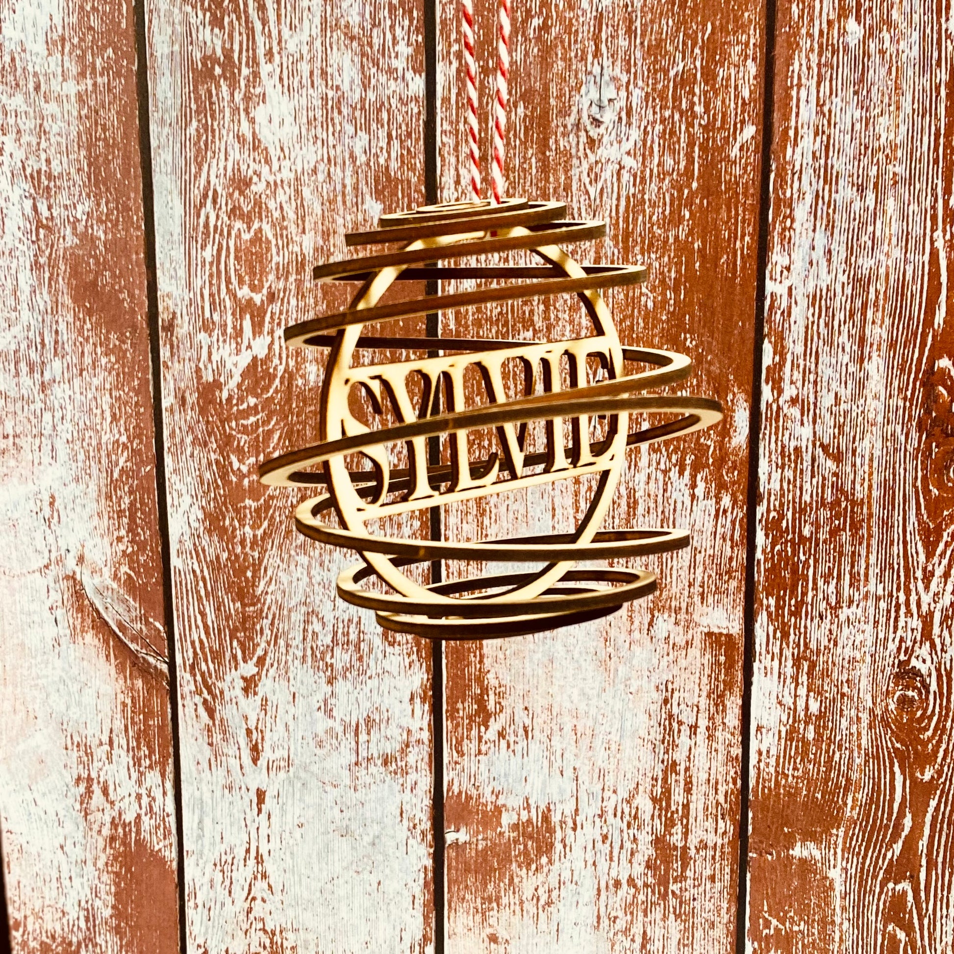 Découpée dans du bois de peuplier, cette boule élégante renferme un prénom au centre de sa spirale. Une décoration originale et un cadeau idéal pour toute la famille.
