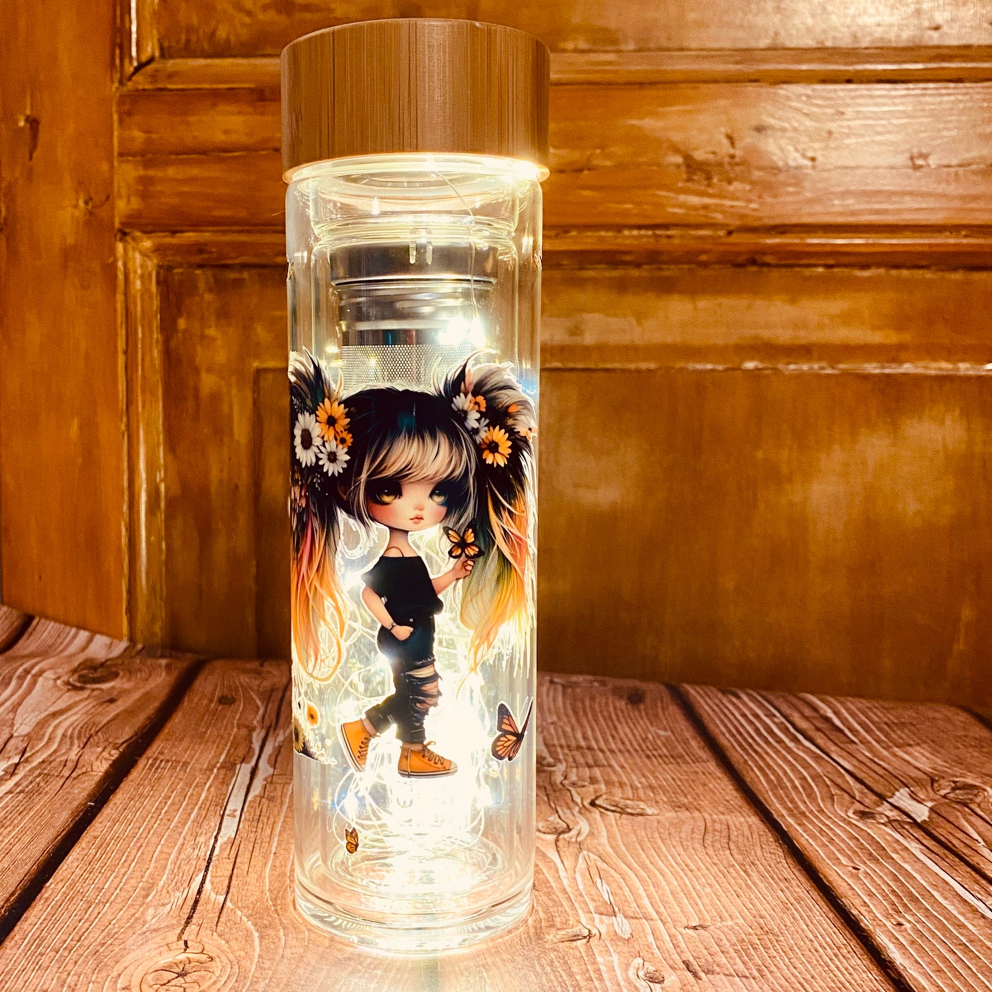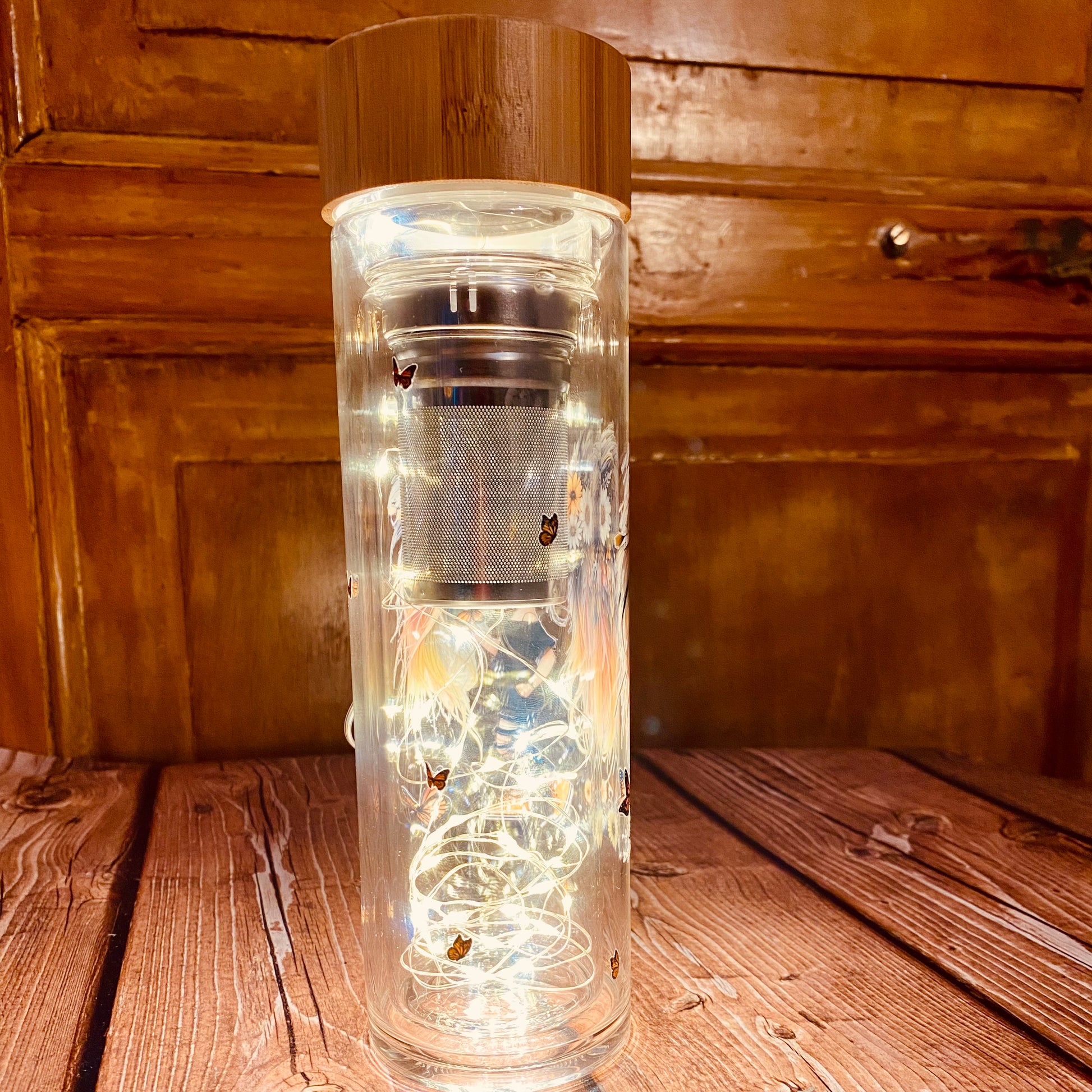 Savourez vos thés et infusions avec élégance grâce à cette bouteille à thé en verre double paroi 330 ml. Son design unique, orné d’une jeune fille ailée, apportera douceur et féérie. Le bouchon en bambou est gravé au laser reprenant le motif, cette bouteille conserve vos boissons chaudes ou froides plus longtemps tout en affirmant un style délicat et enchanteur.