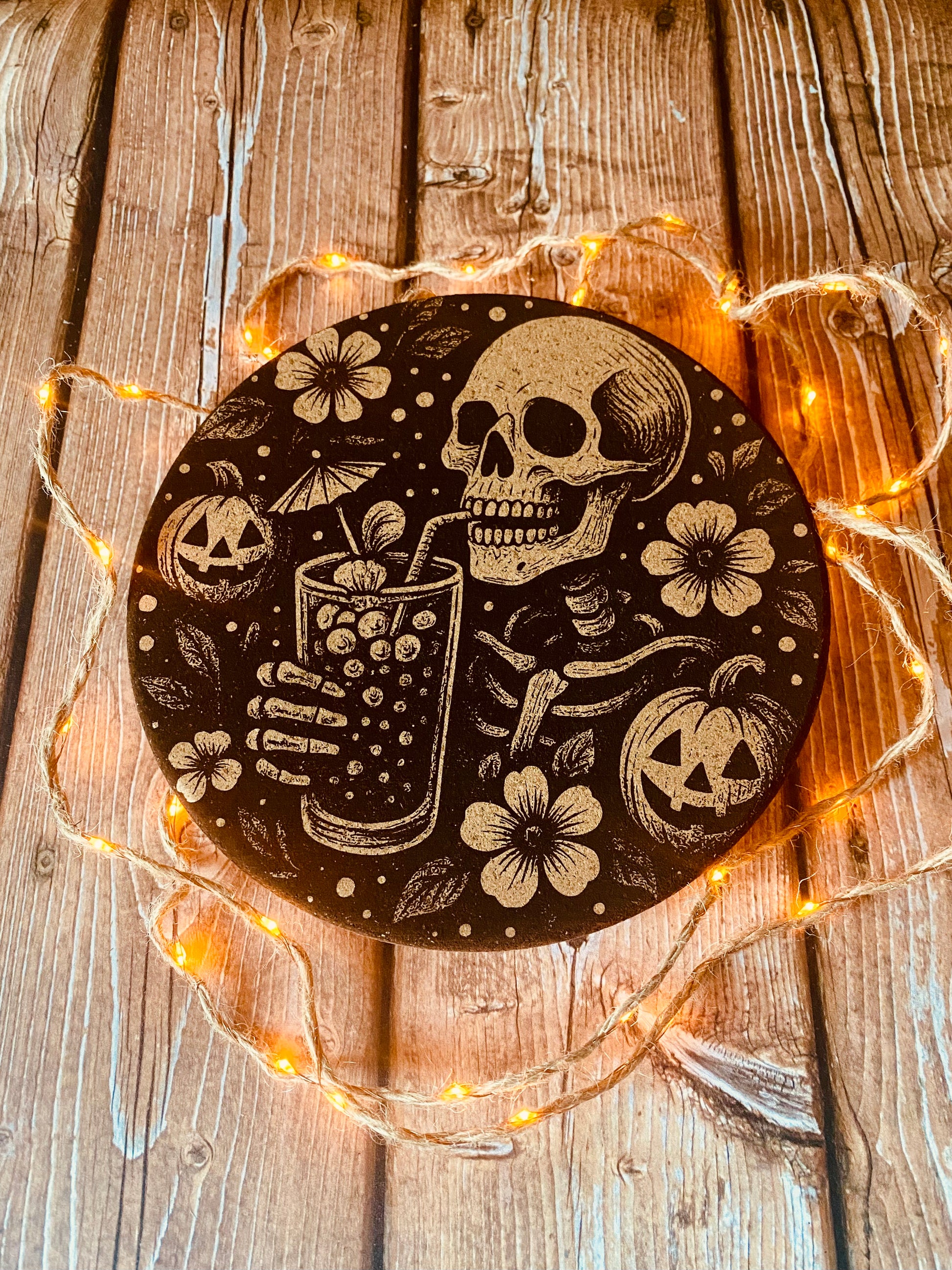 Dessous de plat en liège 19 cm | Motif Crâne Cocktail | Grav' & Vous