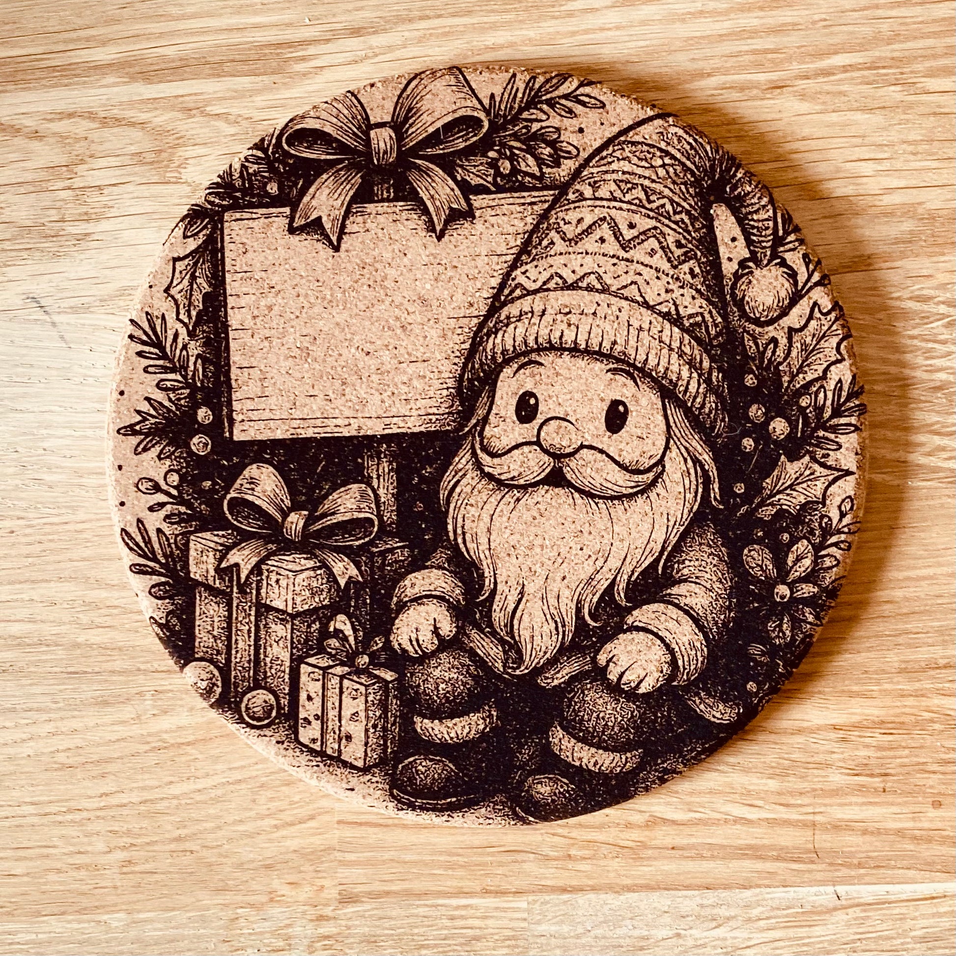 Protégez vos tables avec style grâce à ce dessous de plat en liège gravé au laser. Son design unique représentant l'esprit de Noël.