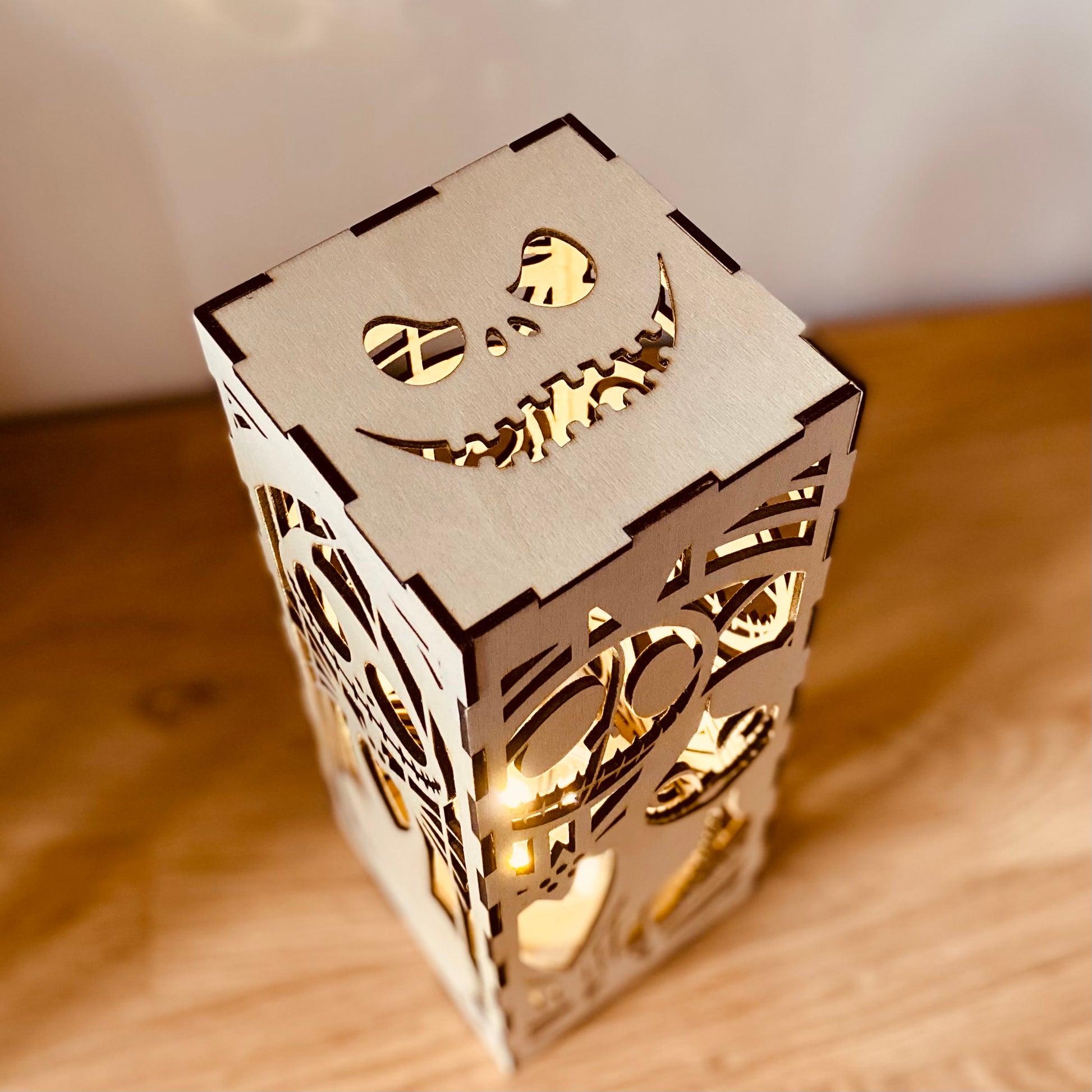 Illuminez votre intérieur avec cette magnifique lanterne en bois découpée au laser, une pièce unique qui allie artisanat et design moderne.