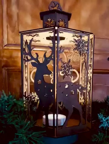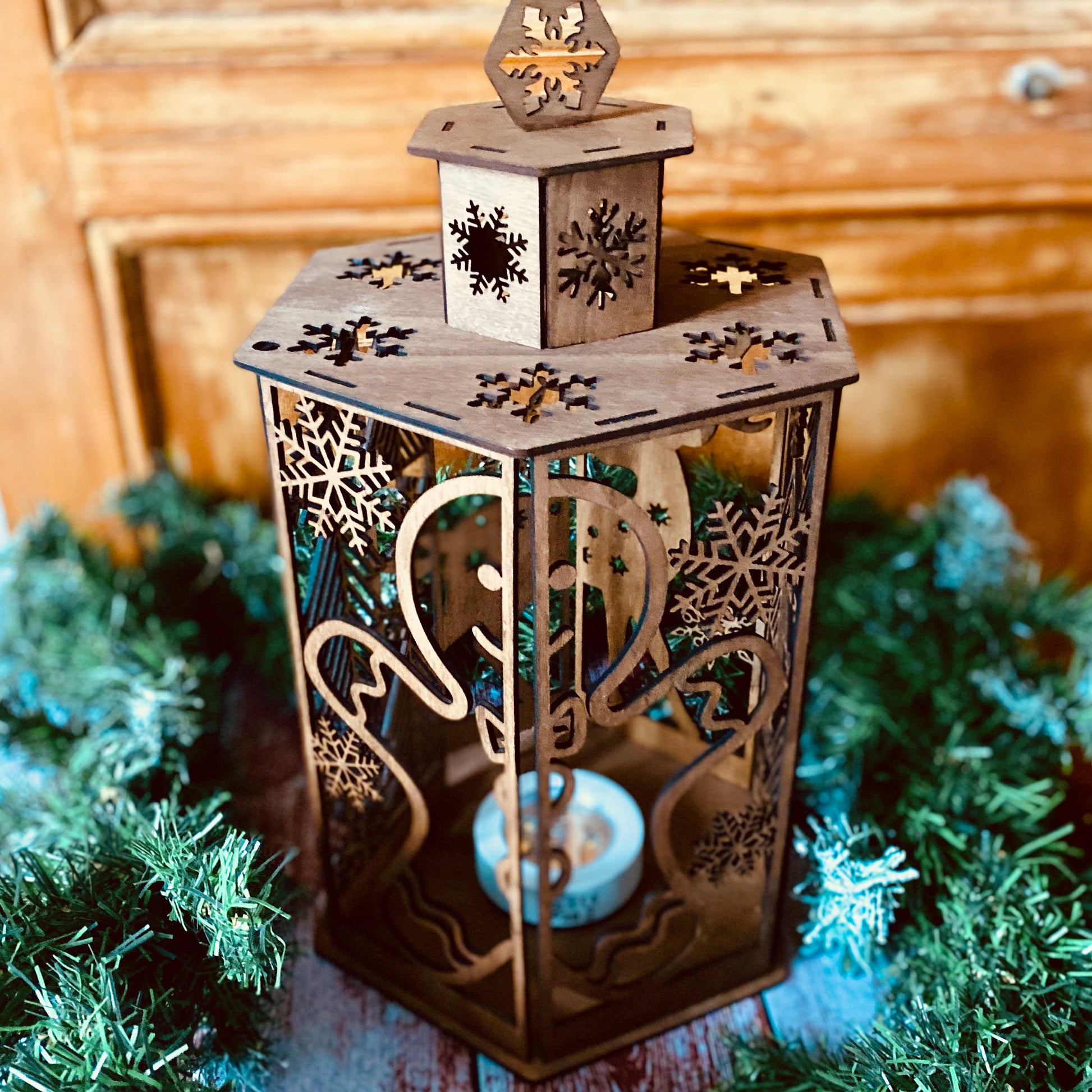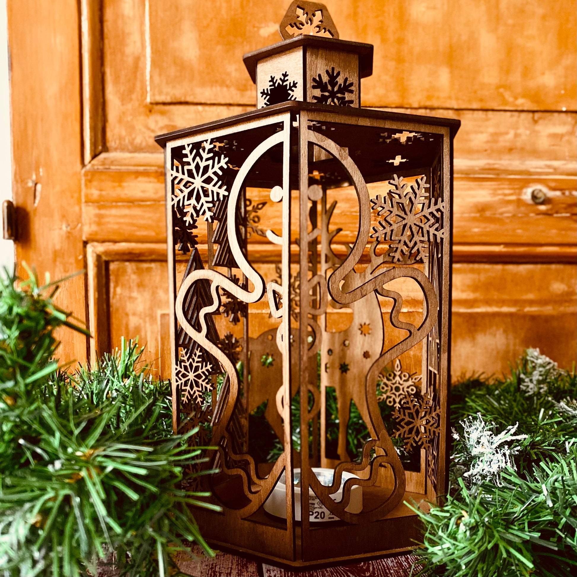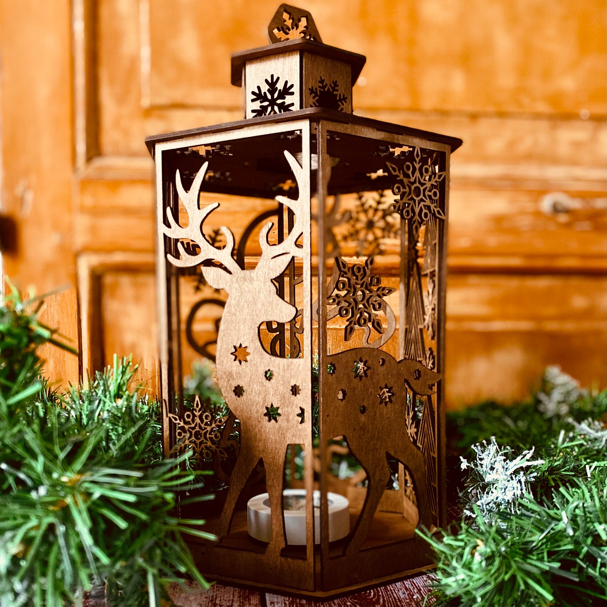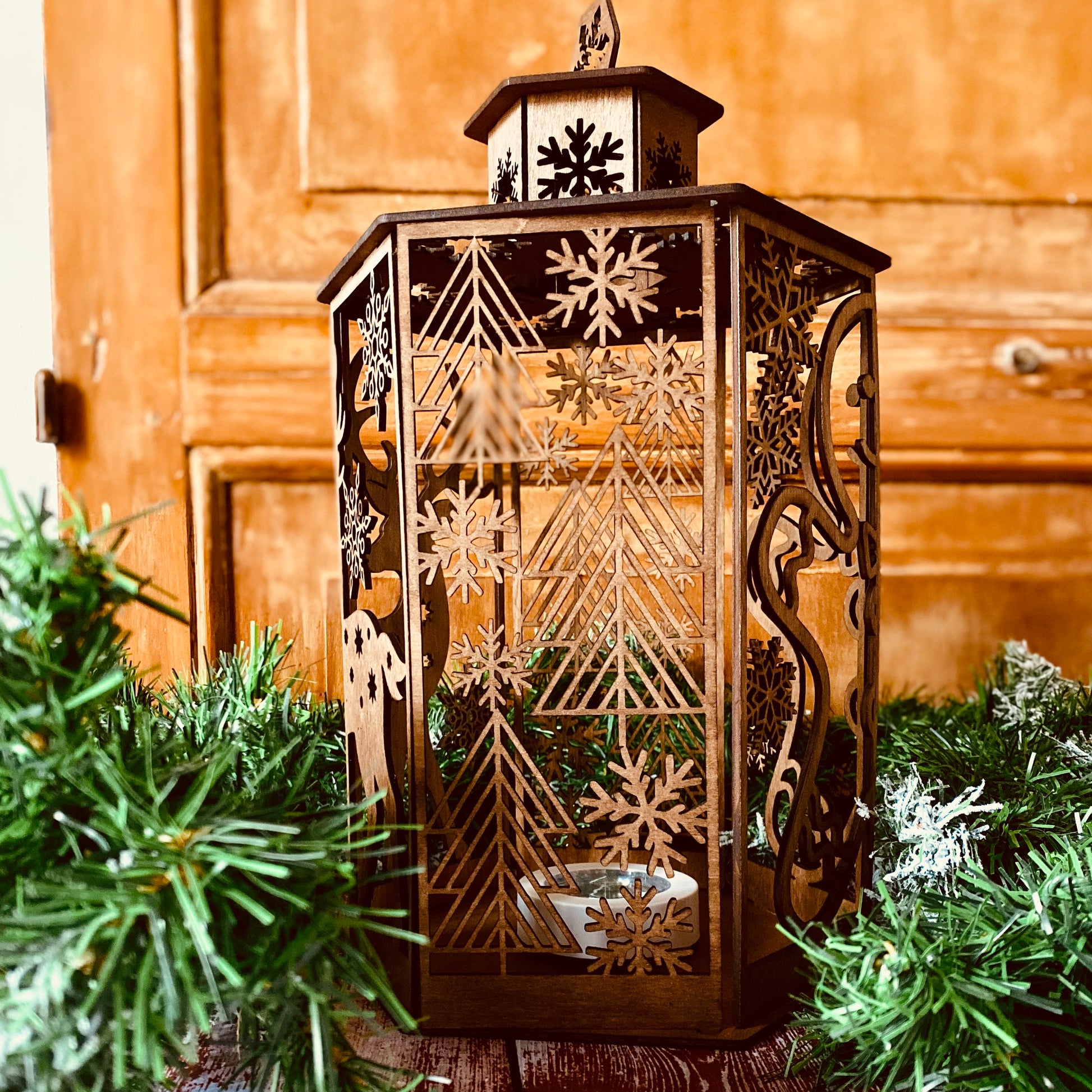 Apportez une touche magique à votre décoration de Noël avec cette magnifique lanterne en bois finement découpée au laser 🎄