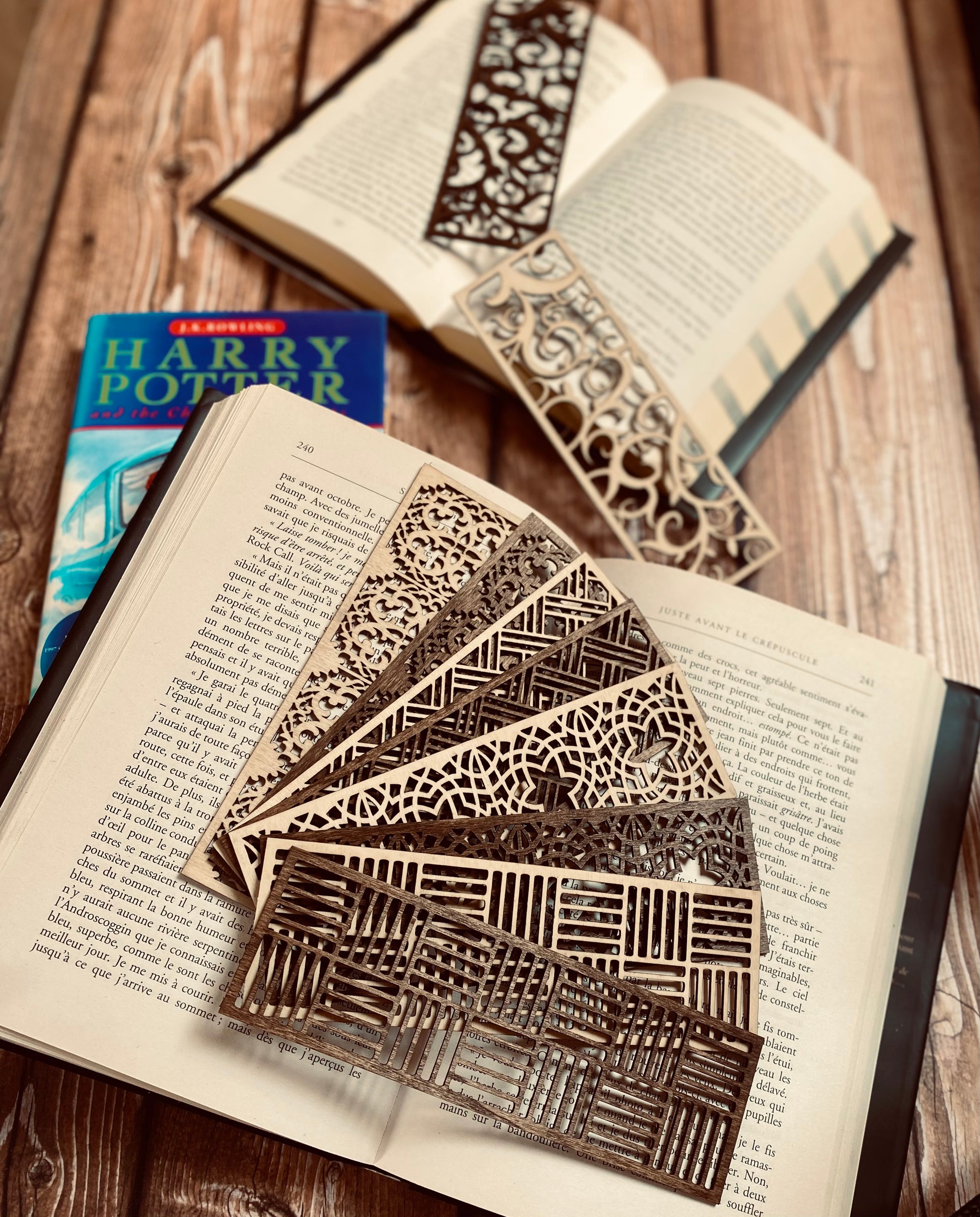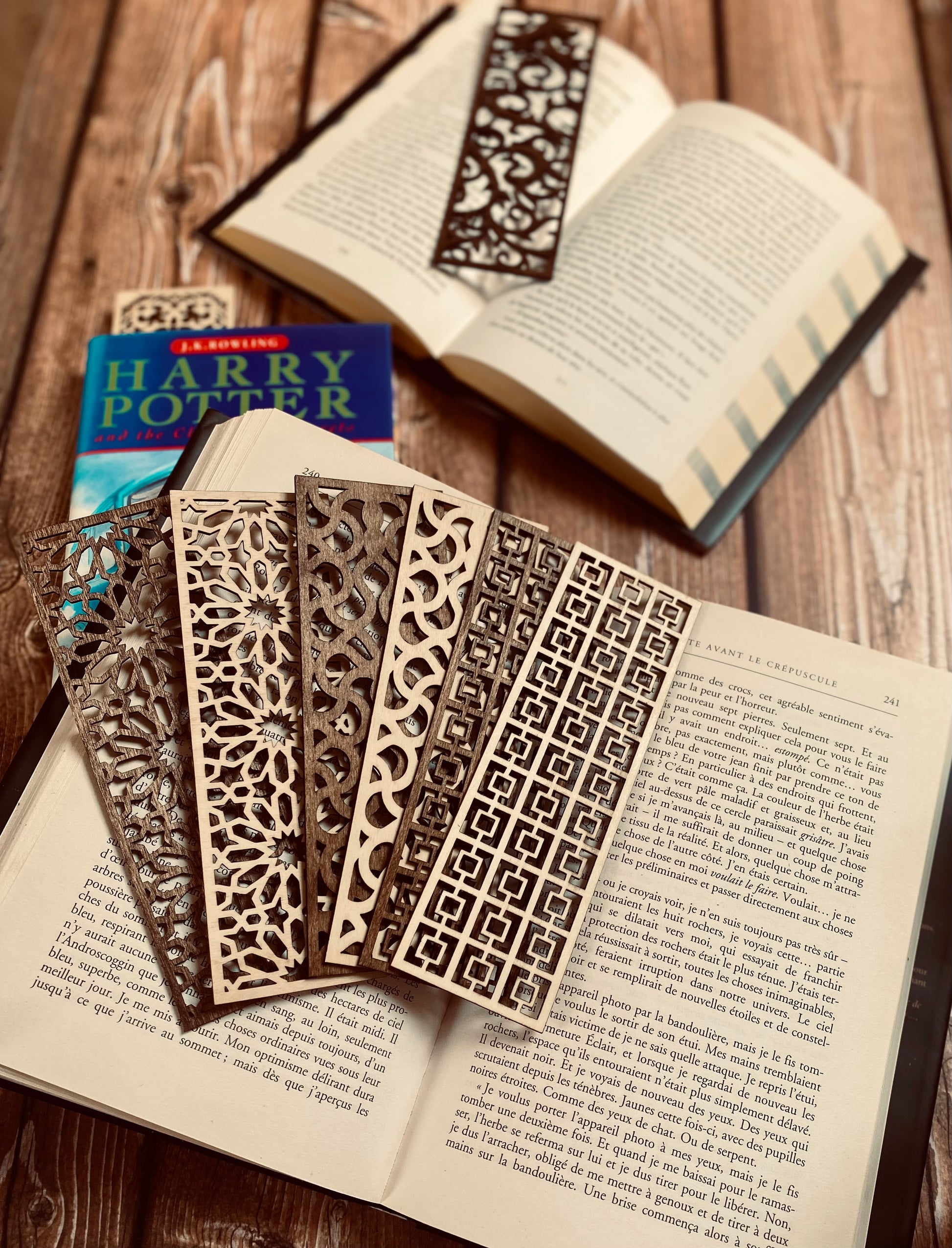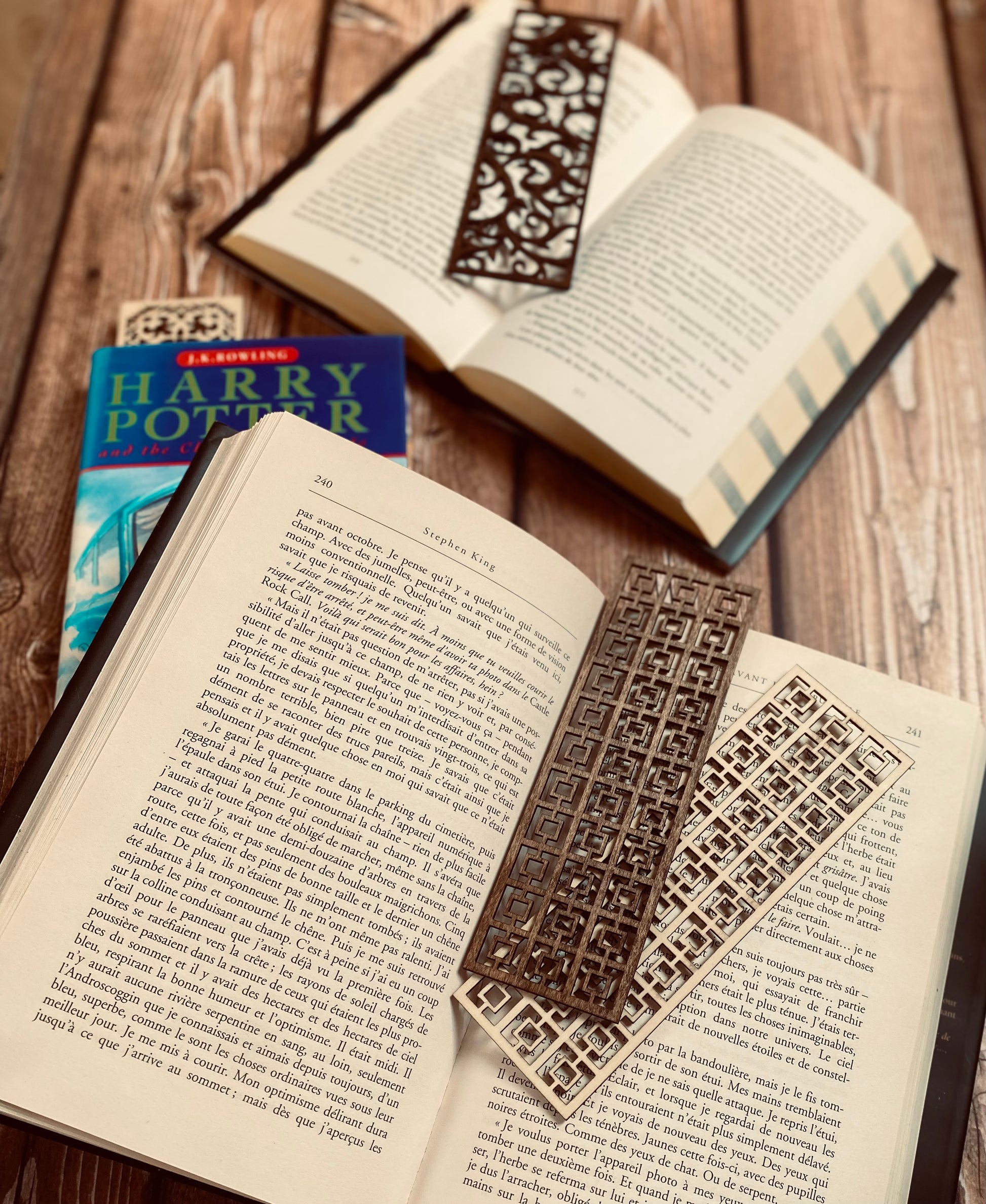 Apportez une touche de charme à vos lectures avec nos marque-pages en bois finement ajourés. Chaque modèle est découpé avec précision au laser pour révéler des motifs élégants, entre simplicité naturelle et design soigné.