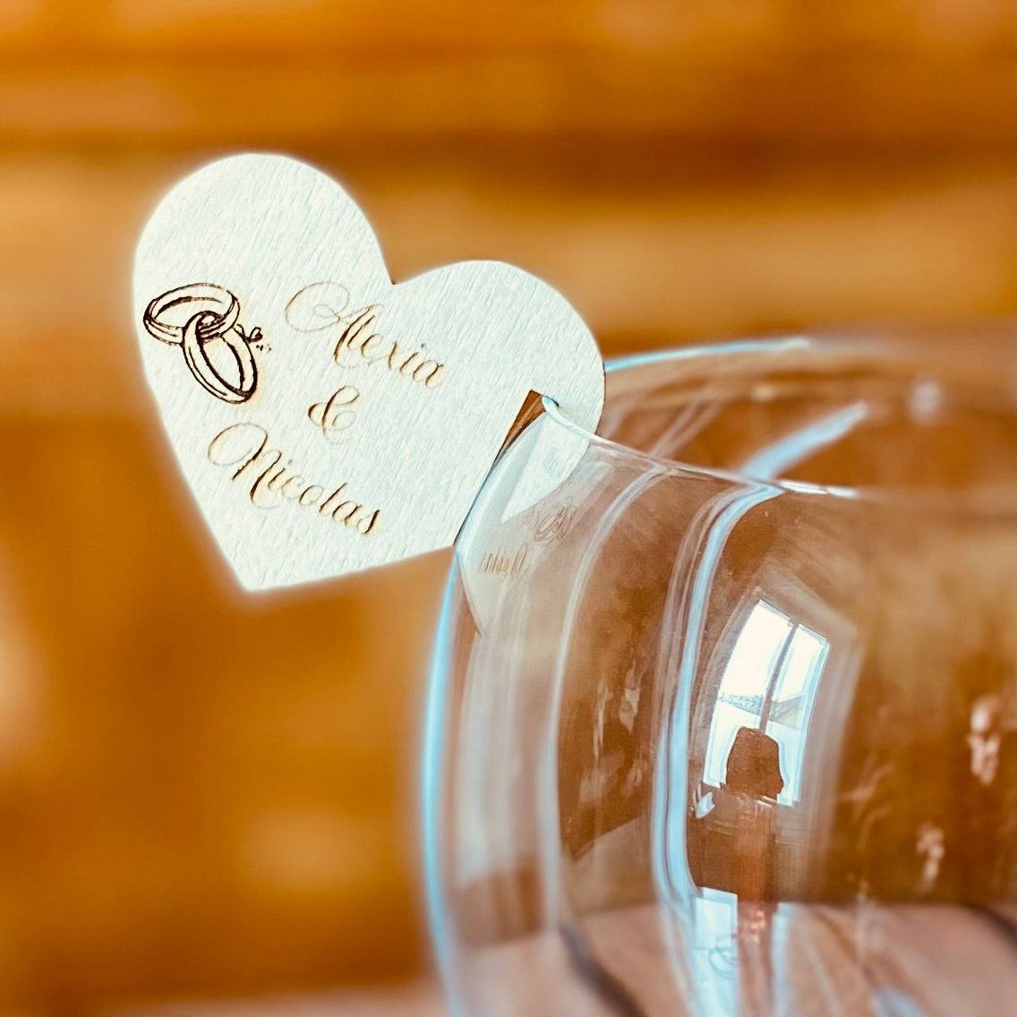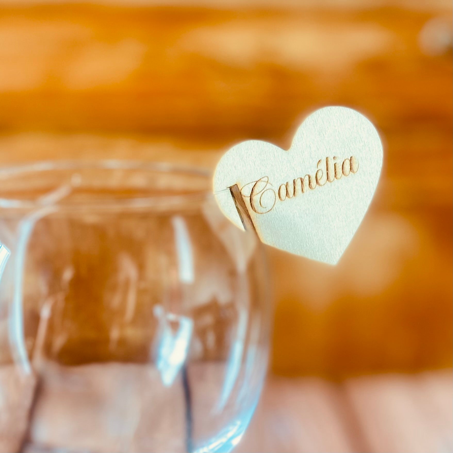 Marque-place cœur en bois personnalisable | Gravure prénom & évènement | Grav' & Vous
