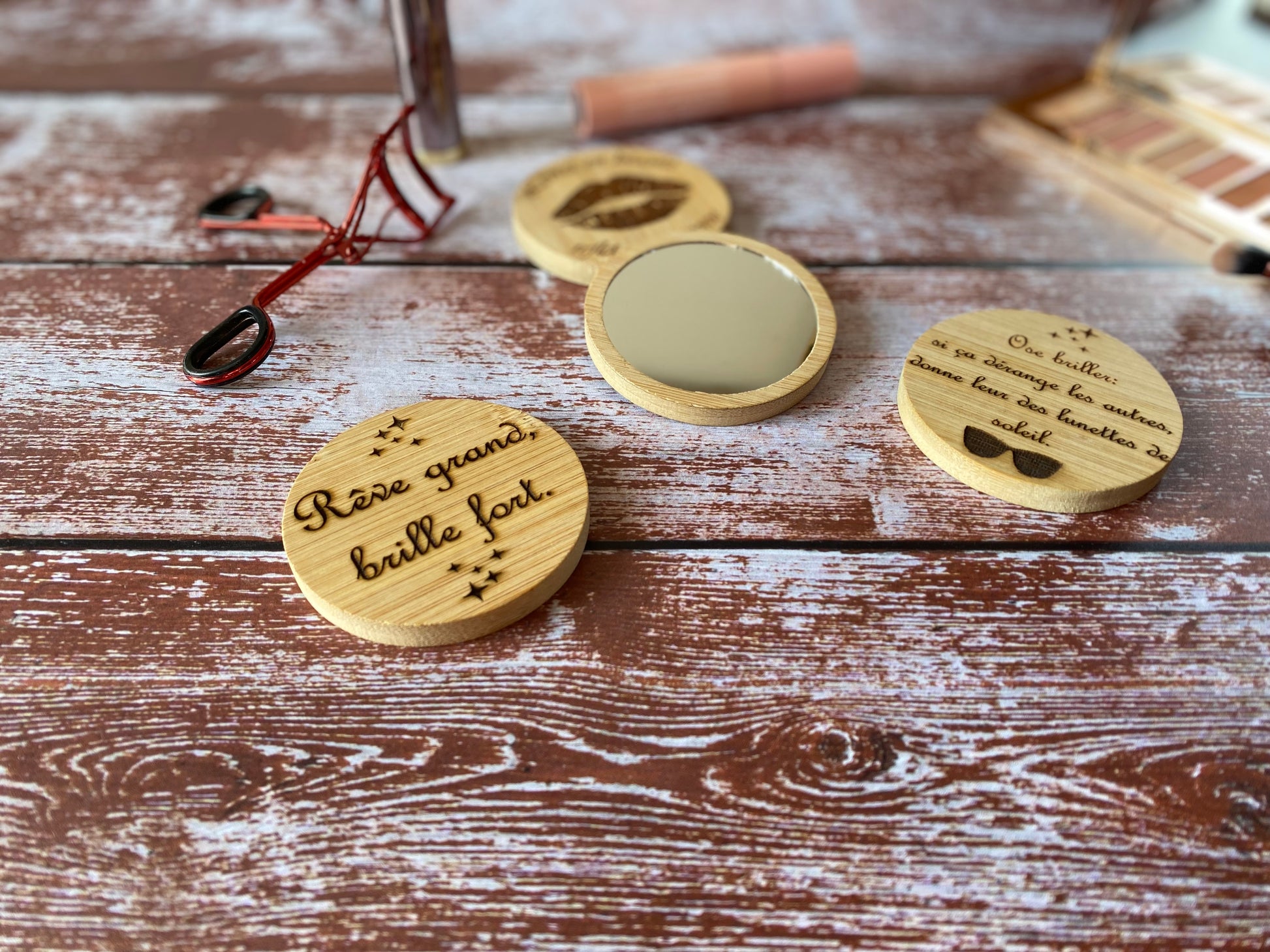 Miroir de Poche Personnalisé en Bambou | Élégance et Praticité | Grav’ & Vous