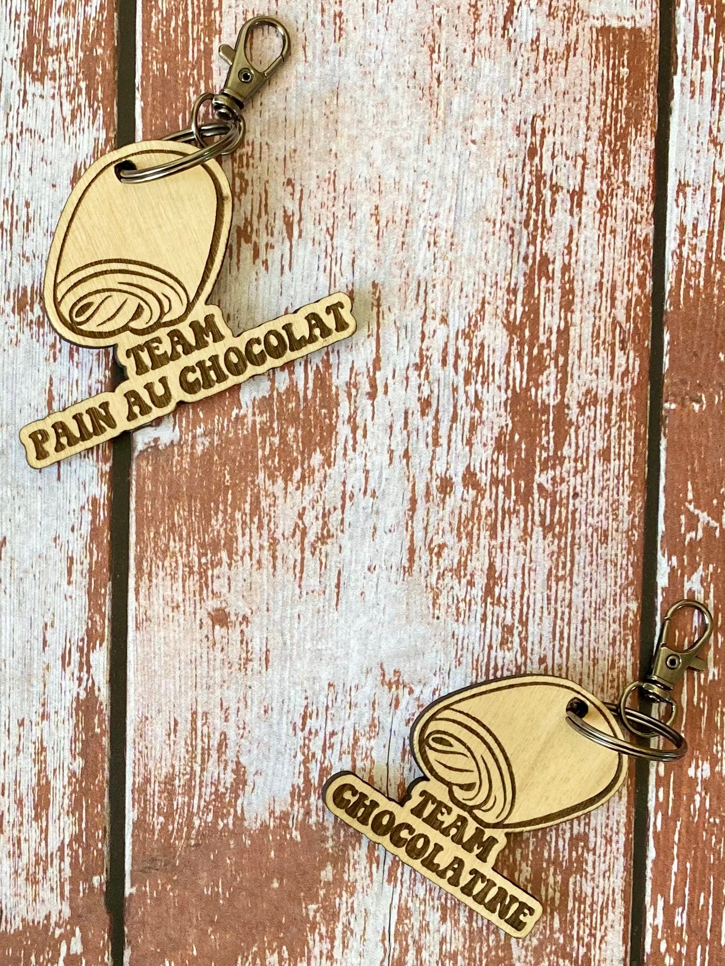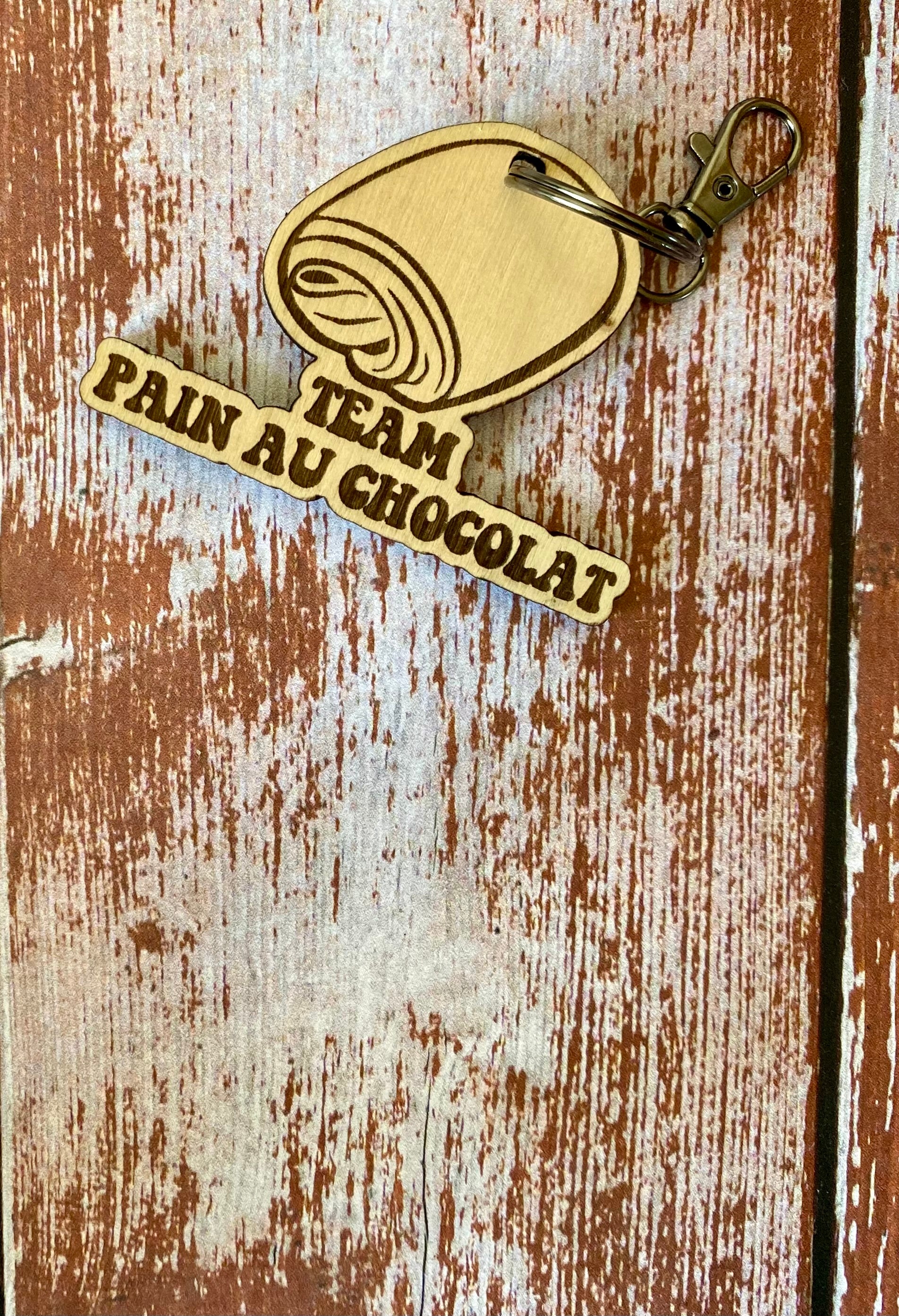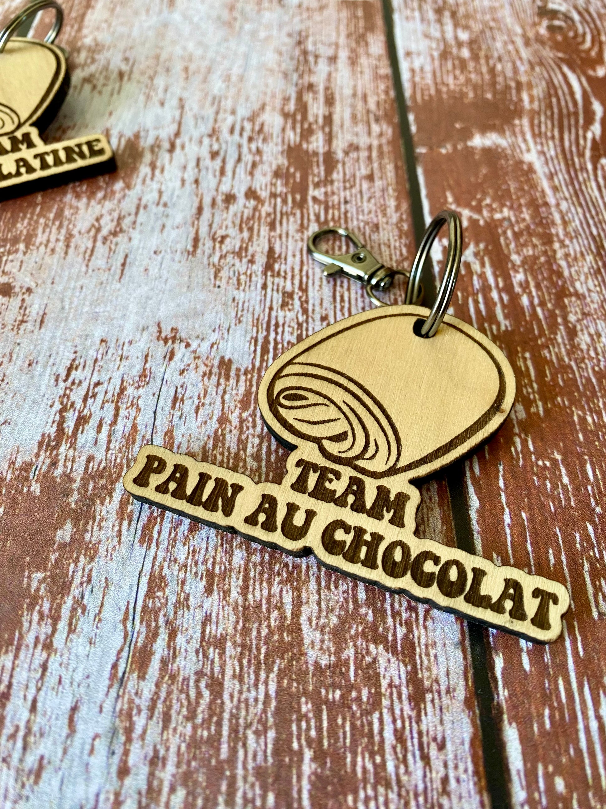 Porte-clés TEAM PAIN AU CHOCOLAT Personnalisé | Cadeau Gourmand Bois Gravé | Grav' & Vous