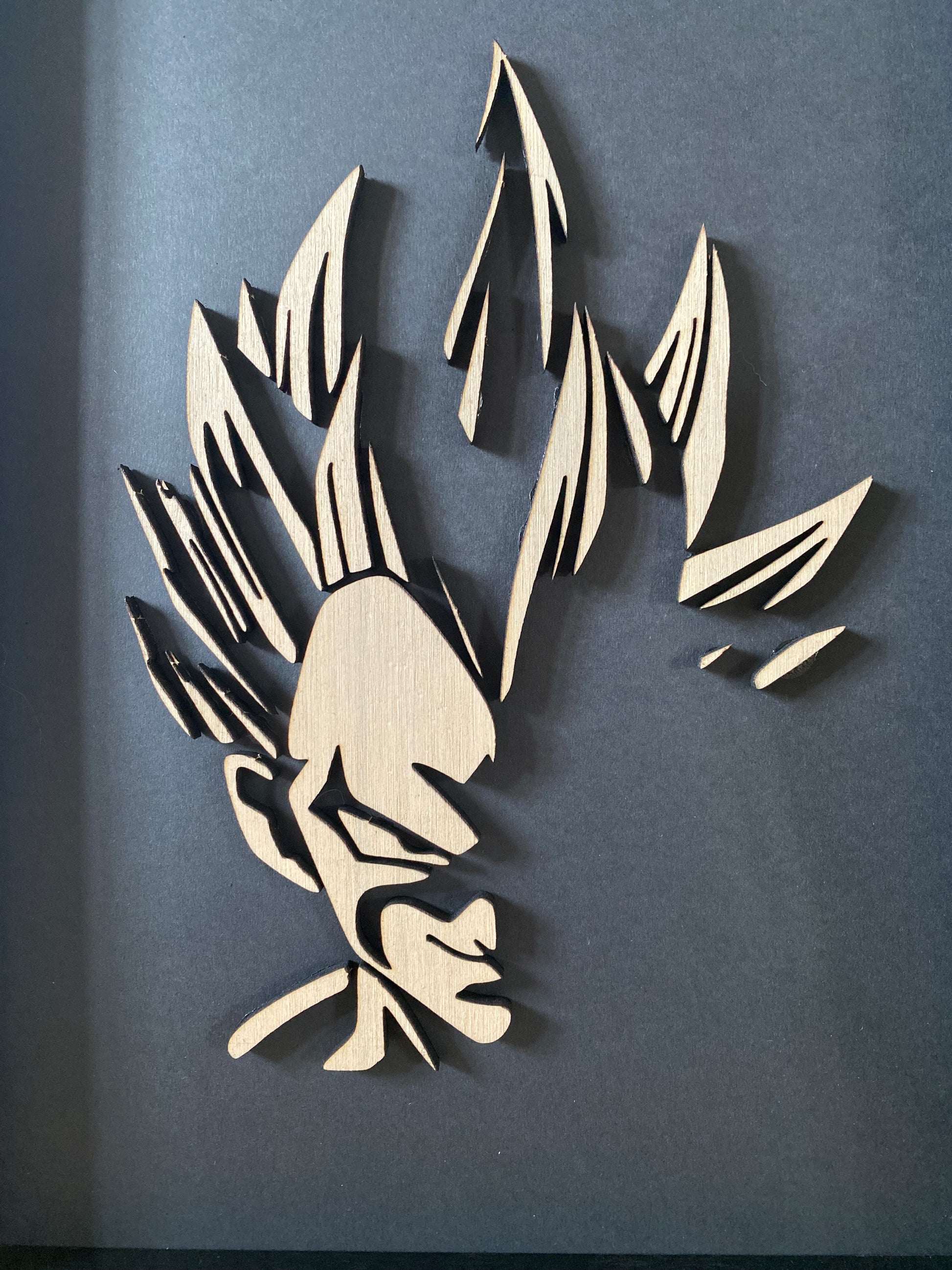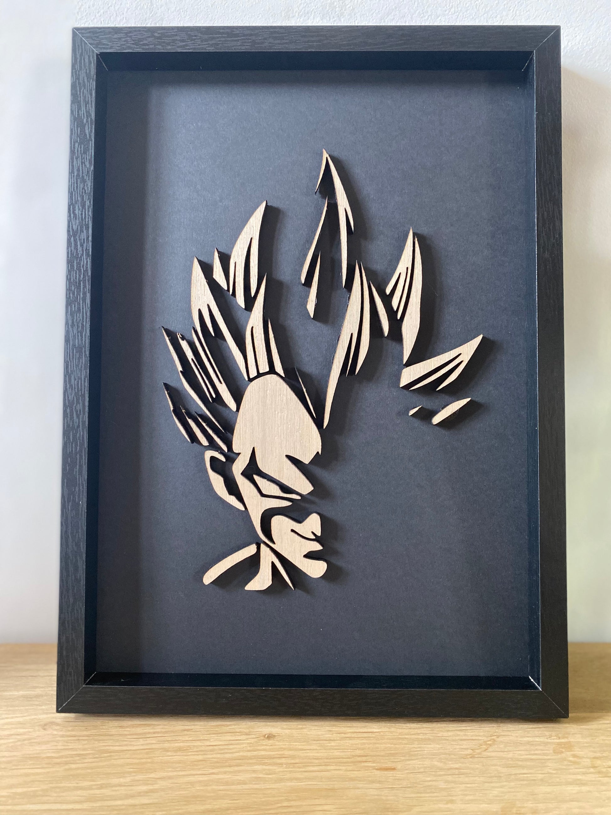 Apportez l’énergie et la puissance de l’univers manga dans votre intérieur avec ce portrait en bois découpé au laser. Chaque pièce est réalisée sur du peuplier de 5mm, alliant la beauté du manga et l'authenticité du travail artisanal. Un ajout parfait à la décoration des fans !