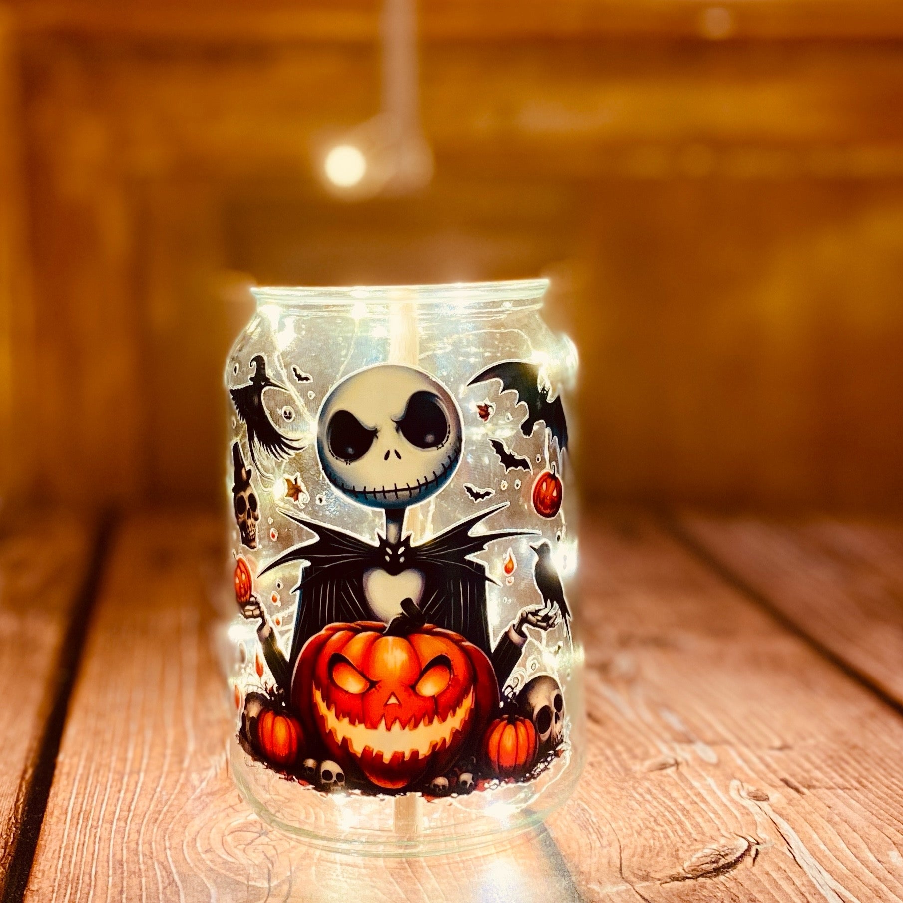 Avec son illustration détaillée d’un personnage squelettique entouré de citrouilles, de chauves-souris et de crânes, ce verre capture parfaitement l’esprit magique et un brin ténébreux de la saison.