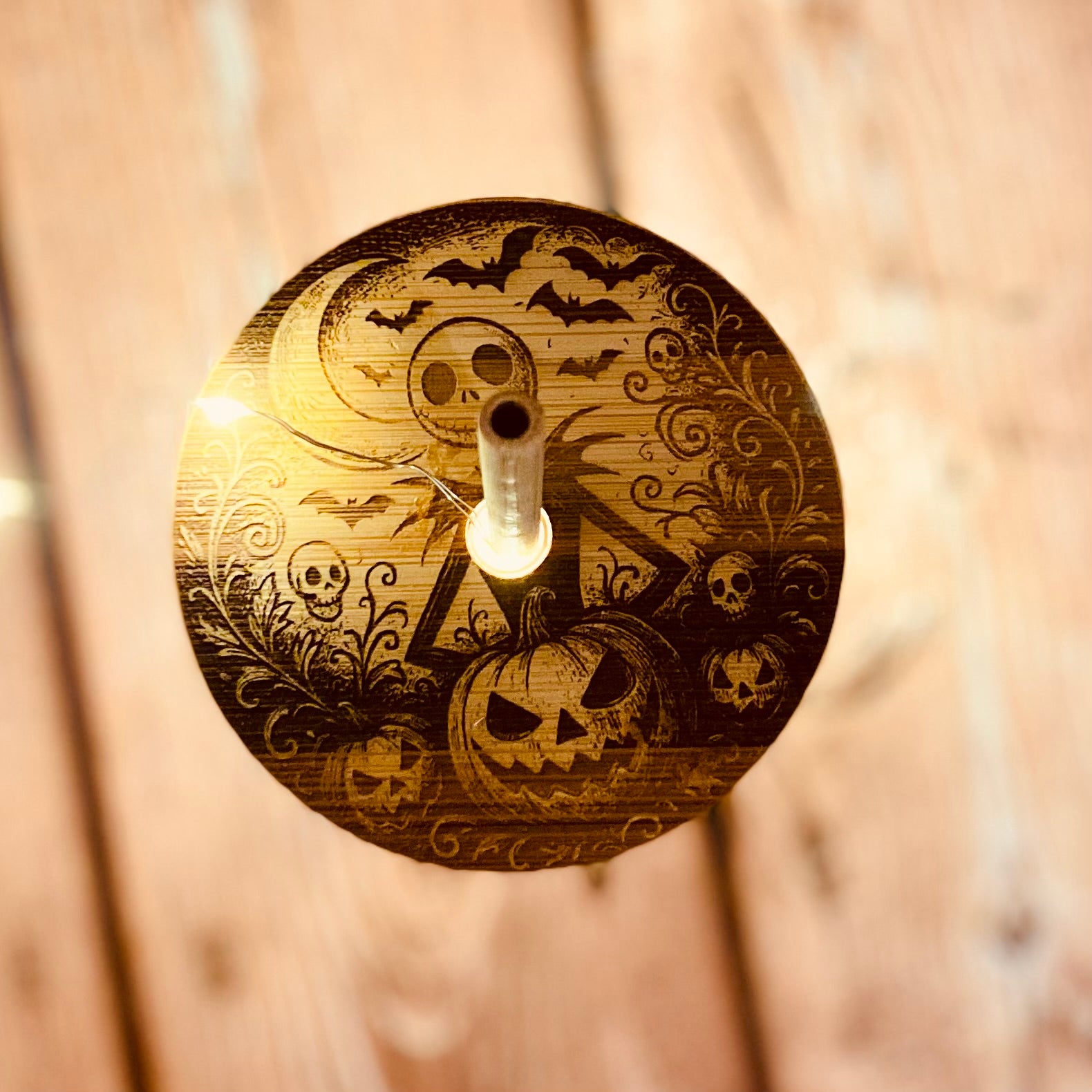 Verre à paille “Citrouille Nocturne” | 400ml, couvercle bambou gravé | Grav' & Vous