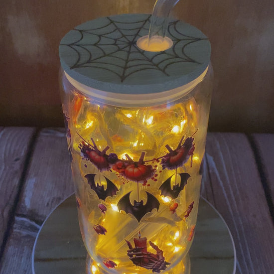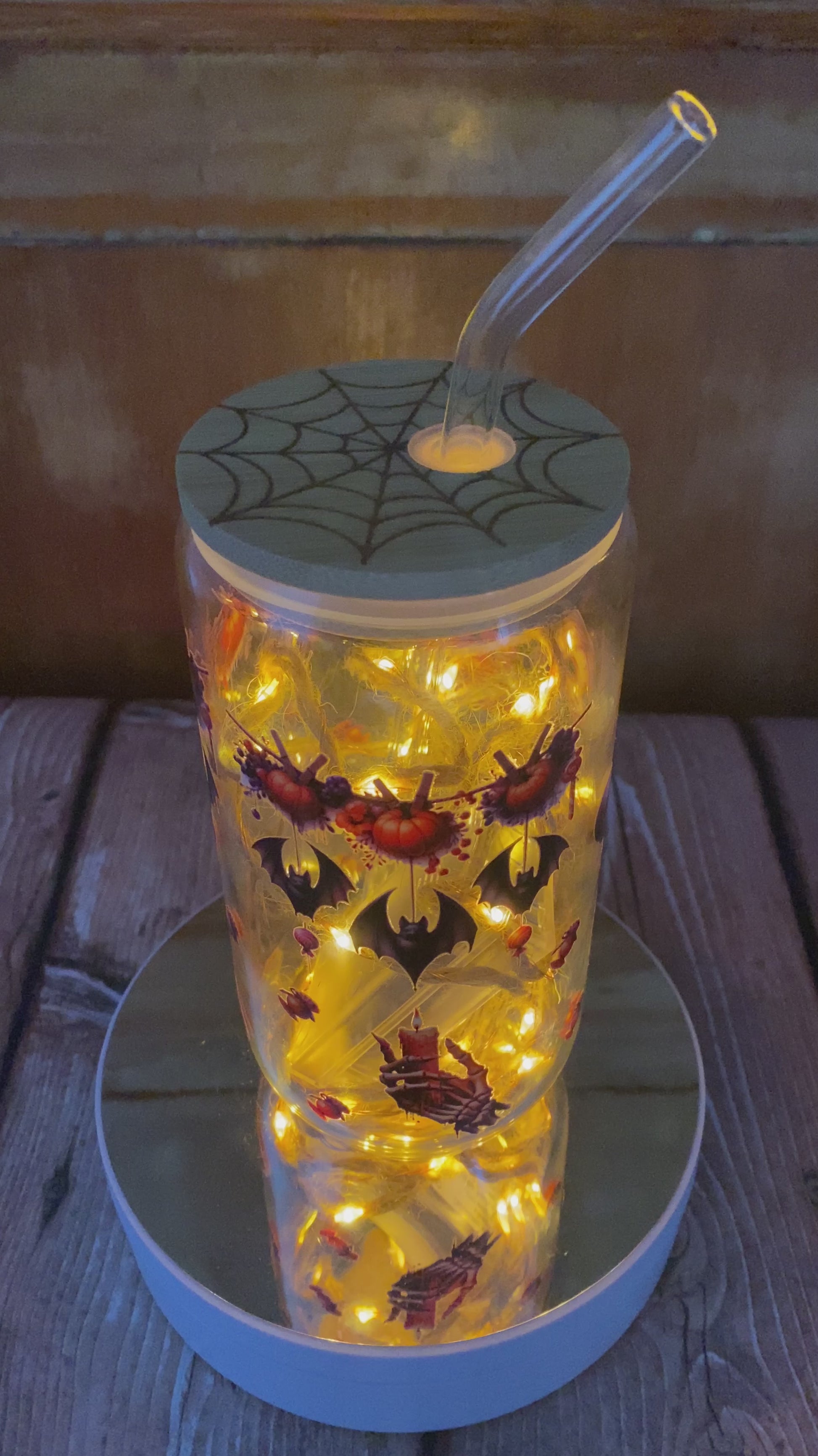 Verre avec paille en borosilicate 500 ml | Édition Féérique Halloween | Grav' & Vous